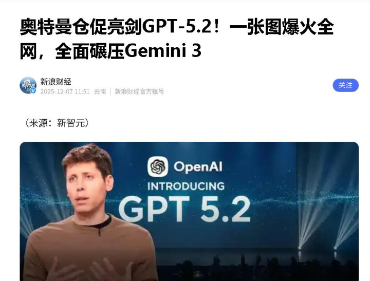 危机不是一天形成的。就在12月1日,OpenAI决定提前发布GPT-5.2,这是他们对谷歌新模型Gemini 3发布后做出的直接回应。