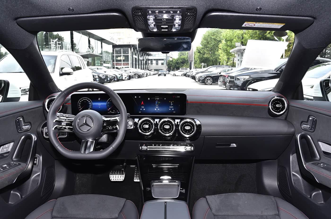 进入车内,2026款奔驰CLA五门猎跑车采用以驾驶者为中心的布局,整体设计简约精致。中控台配备10.25英寸全液晶仪表+14英寸中控屏的双联屏组合,内置奔驰最新的MB.OS操作系统,支持AI语音助手与5G互联,操作流畅度出色。屏幕两侧保留标志性的圆形空调出风口,内部加入氛围灯点缀,空间表现方面,得益于车身布局优化,身高175cm的体验者坐进前排,头部空间剩余一拳两指,腿部空间舒展;保持前排座椅不动,后排膝部空间可达一拳以上,接近纯平的地台设计提升三人同乘舒适性,仅头部受溜背造型影响略感局促。