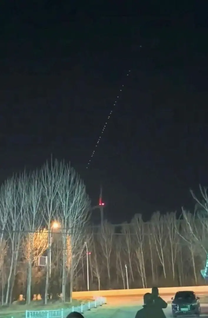 多座城市的人抬头看见同一幕:一条直线般的光点队列从北天划向东方或东南,数目大约二三十个,移动得很快,有些人蹲在路边拿出手机,十来分钟后那串光淡了、散了,街边说话声才恢复平静